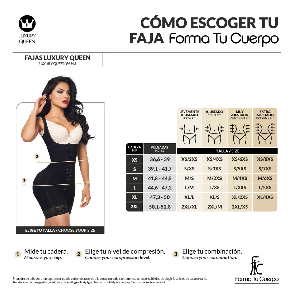 3 niveles de broches de compresión · cierre perineal · negro (una talla para caderas y otra para cintura).